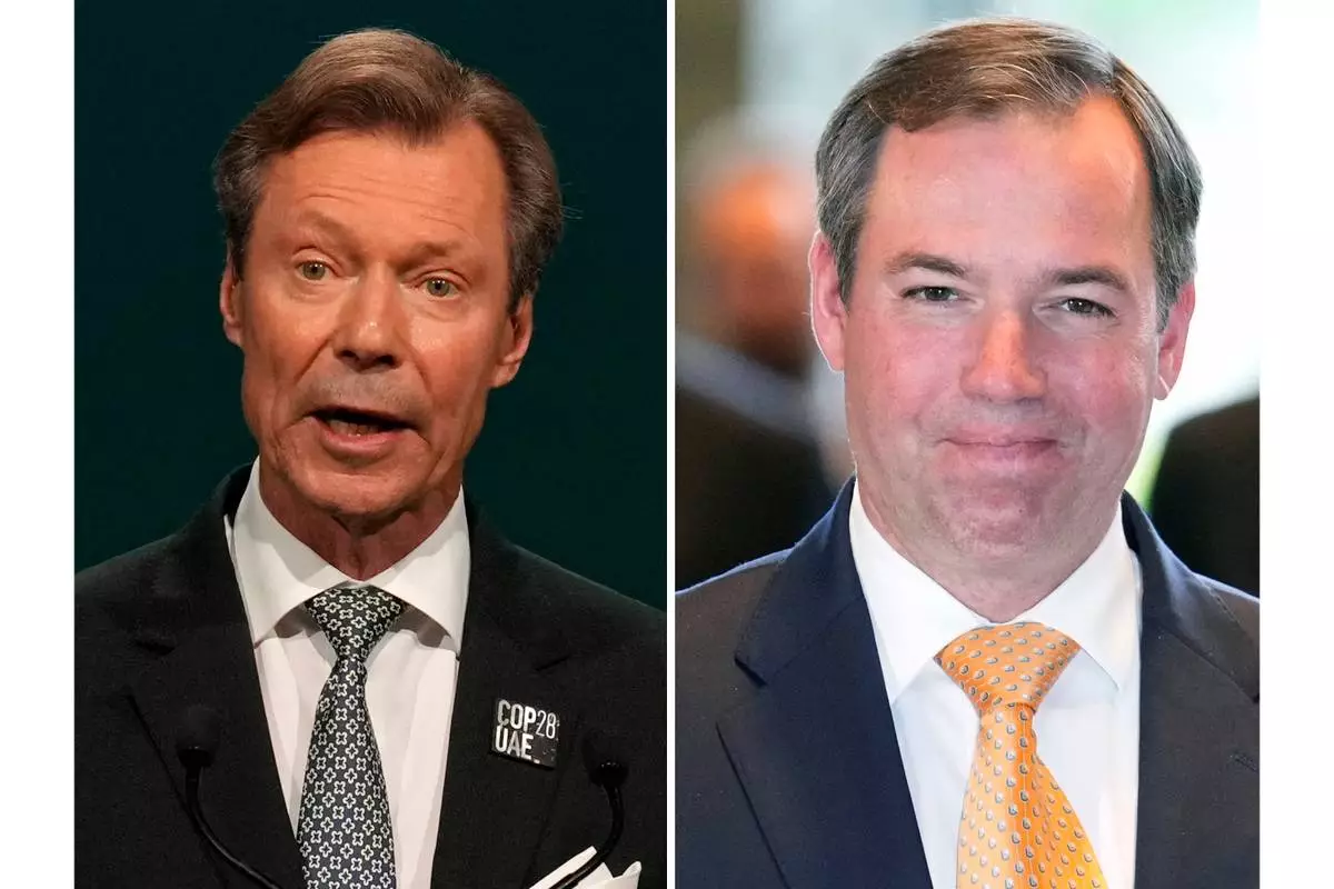 FILE - This photo combination shows Grand Duke Henri of Luxembourg, left, Dec. 1, 2023, in Dubai, United Arab Emirates and Luxembourg's Crown Prince Guillaume in Tokyo, June 10, 2024. (AP Photo/Rafiq Maqbool, Franck Robichon/Pool Photo via AP)