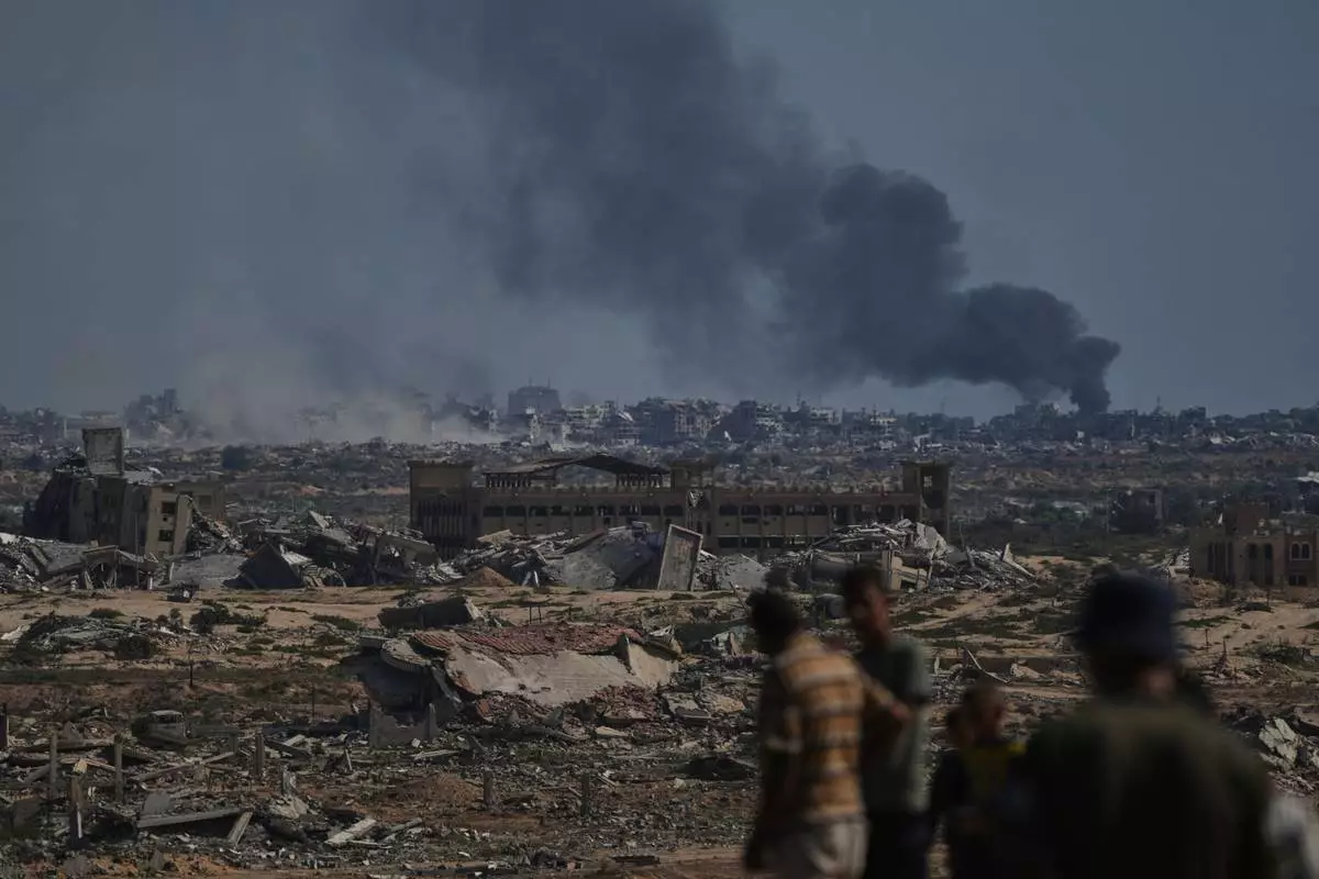Smoke rises to the sky following an Israeli military strike in the northern Gaza Strip, as seen from southern Israel, Friday, Oct. 3, 2025. (AP Photo/Leo Correa)