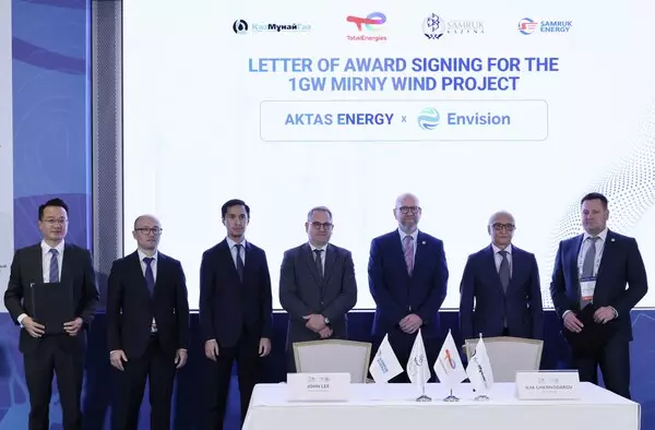 ASTANA, Kazakhstan , Oct. 3, 2025 /PRNewswire/ -- Envision Energy, a global leader in green technology, announced a landmark collaboration in Kazakhstan's 1 GW Mirny Wind Farm, Kazakhstan's first and most ambitious renewable energy project to date, signing a Letter of Award (LOA) to supply 124 of its advanced 6.5 MW wind turbines. The agreement was signed during Kazakhstan Energy Week in Astana, in the presence of project partners TotalEnergies, Samruk-Energo JSC, and KazMunayGas.