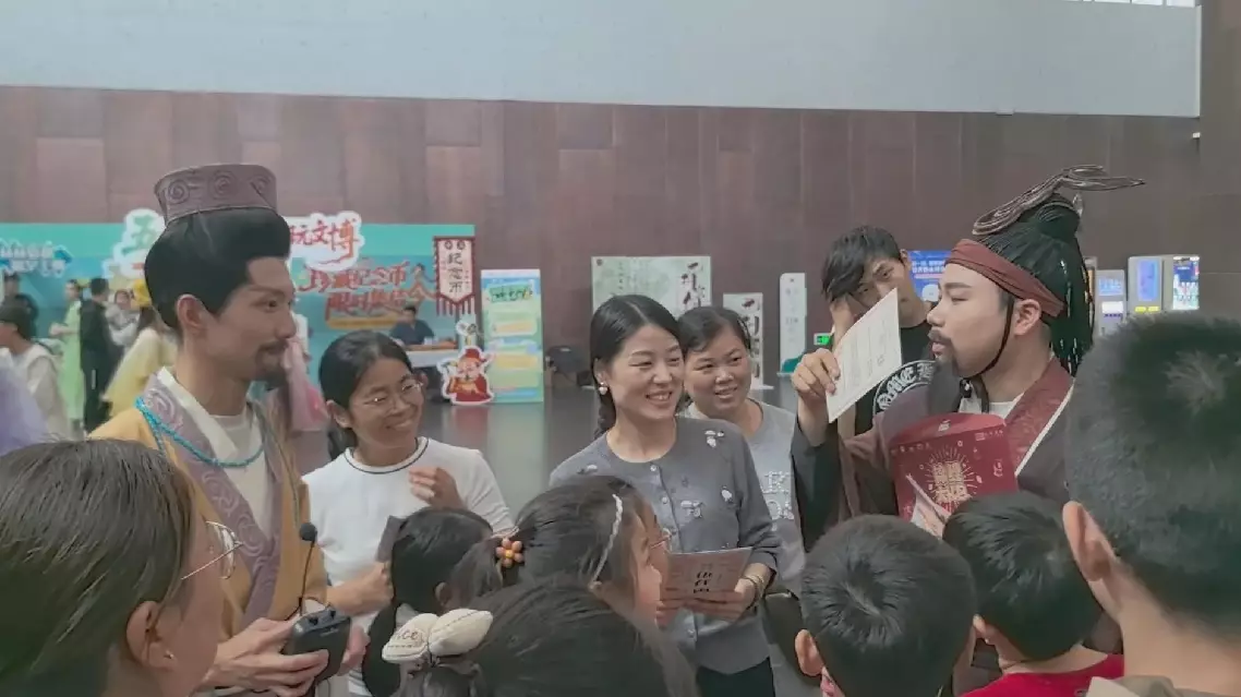 At the Sui-Tang Dynasties Grand Canal Cultural Museum, museum guides dressed as ancient characters handed out museum maps to visitors and accompanied them on a tour to trace threads of history.