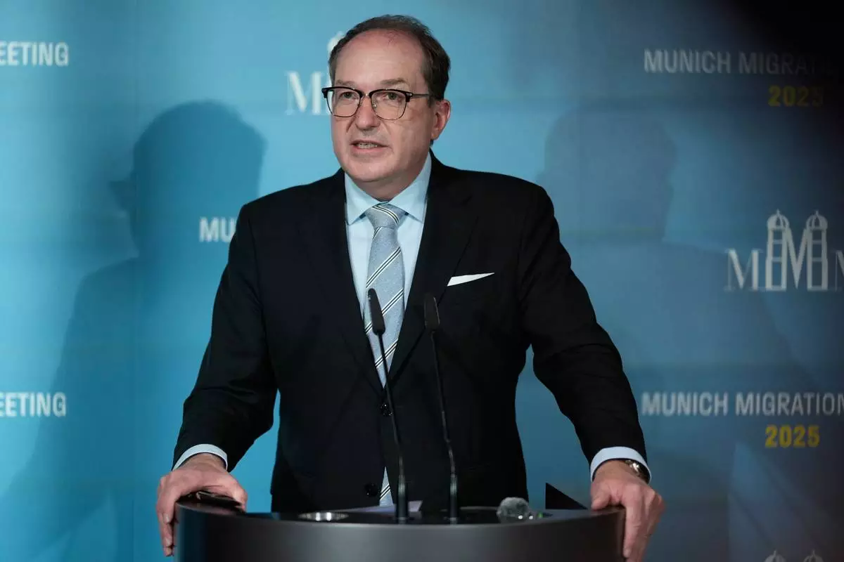 Germany's Minister of the Interior Alexander Dobrindt briefs the media after the 'Munich Migration Meeting' a European ministerial meeting on migration in Munich, Germany, Saturday, Oct. 4, 2025. (AP Photo/Matthias Schrader)