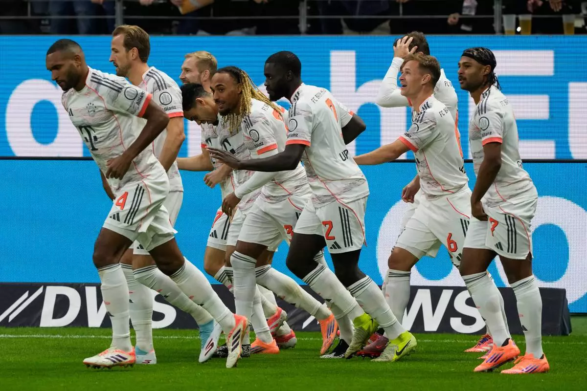 Bayern's goal came from what was actually the second attempt at kicking off the game. The referee called back play at the first kickoff after spotting Bayern's Michael Olise had moved into the Frankfurt half before he was supposed to.
