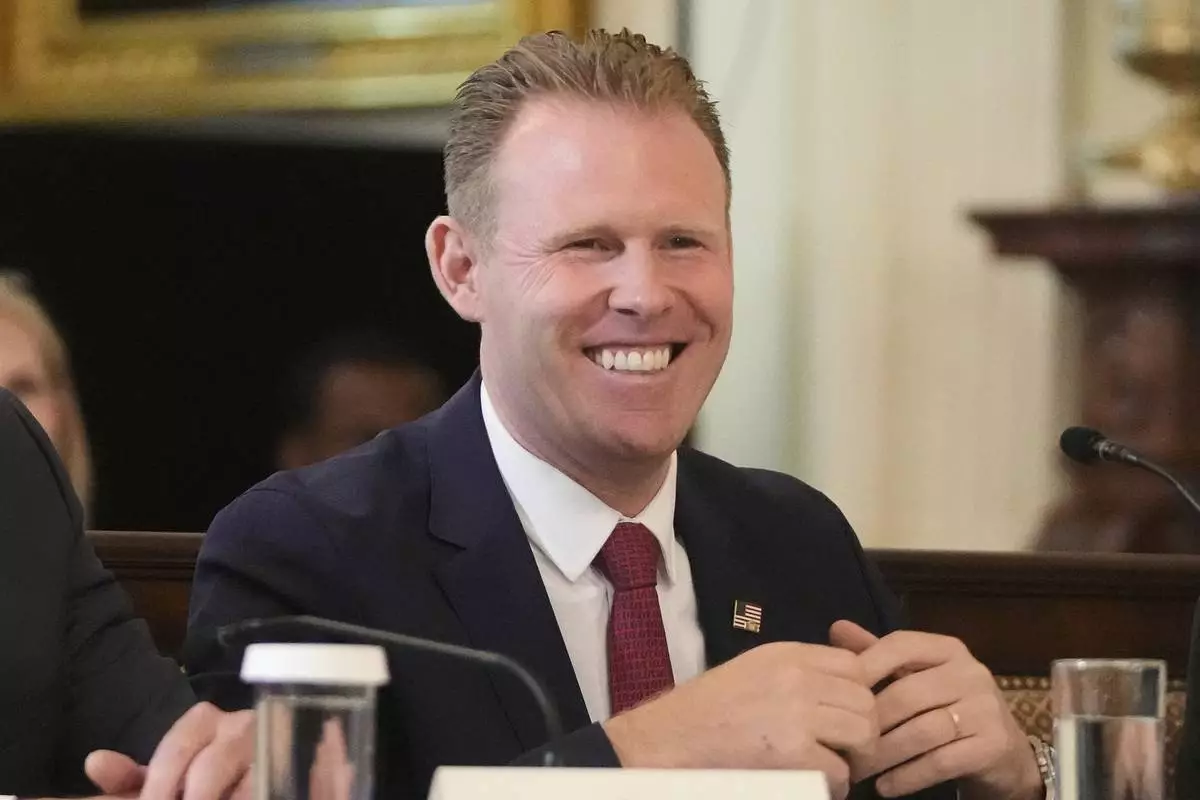 FILE - Andrew Giuliani listens as President Donald Trump speaks during a FIFA task force meeting on the 2026 FIFA World Cup in the East Room of the White House, May 6, 2025, in Washington. (AP Photo/Mark Schiefelbein, File)