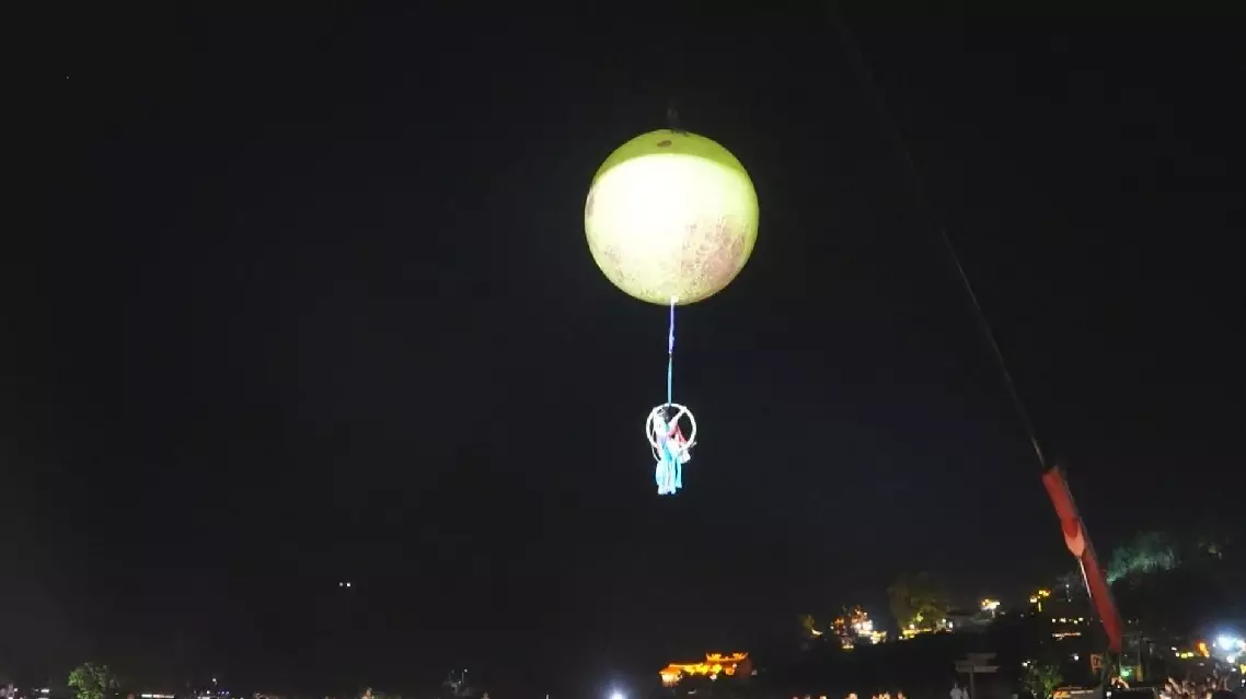 Holding dozens of fish-shaped lanterns, the tourists had the opportunity to experience local culture in depth and they could also appreciate a special performance where a "goddess" scattered flower petals from a towering moon sculpture.