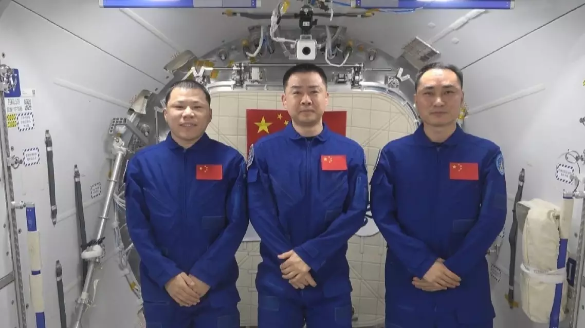 The Shenzhou-20 astronauts Chen Dong, Chen Zhongrui, and Wang Jie shared their specially prepared space meals, delivering a distinctive festival greeting to the nation from hundreds of kilometers away from Earth.