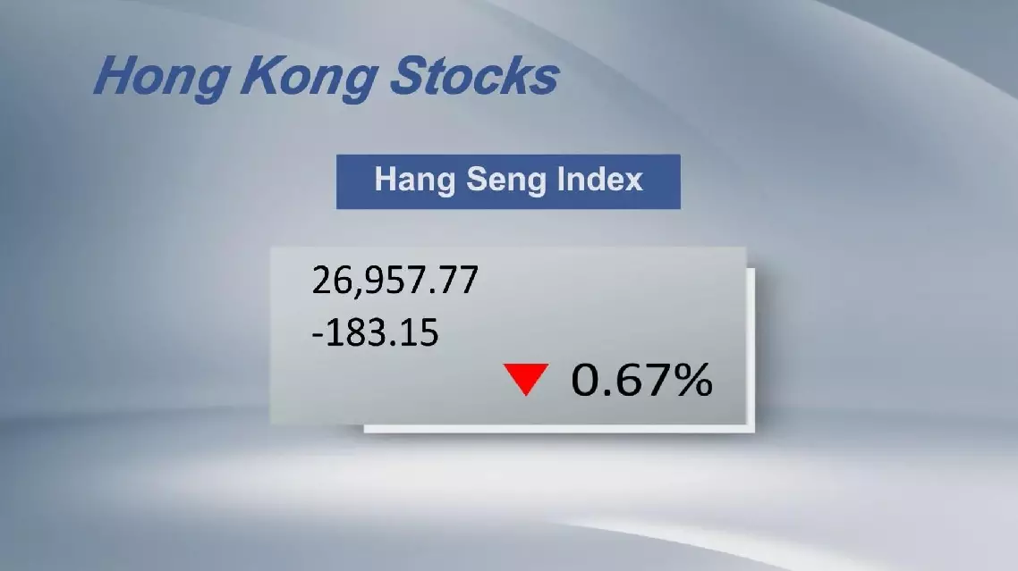 Hong Kong's stock market ended lower on Monday with the benchmark Hang Seng Index down 0.67 percent to close at 26,957.77 points.