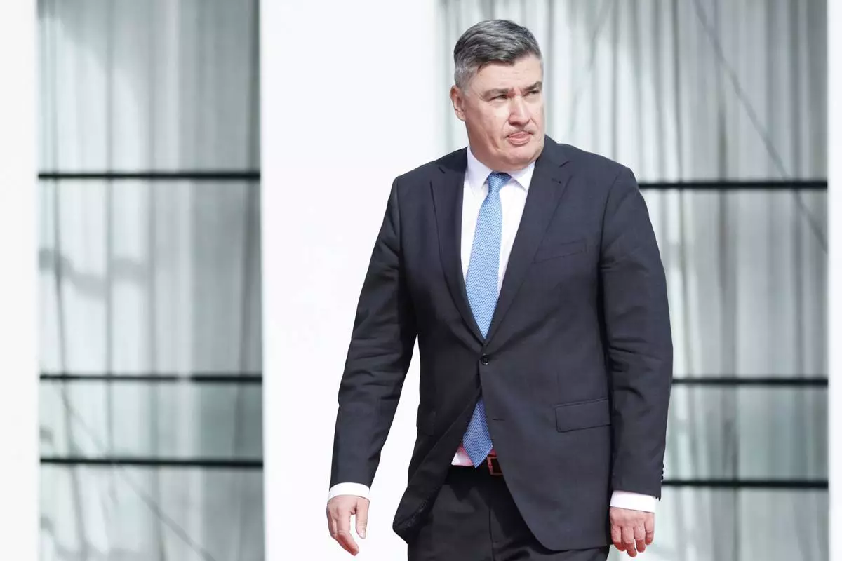 Croatian President Zoran Milanovic arrives at the Brdo-Brijuni, Process Leaders' Meeting in Golem, Albania, 50 kilometers (30 miles) west of the capital, Tirana , Albania on Monday, Oct. 6, 2025 .(AP Photo/Vlasov Sulaj)