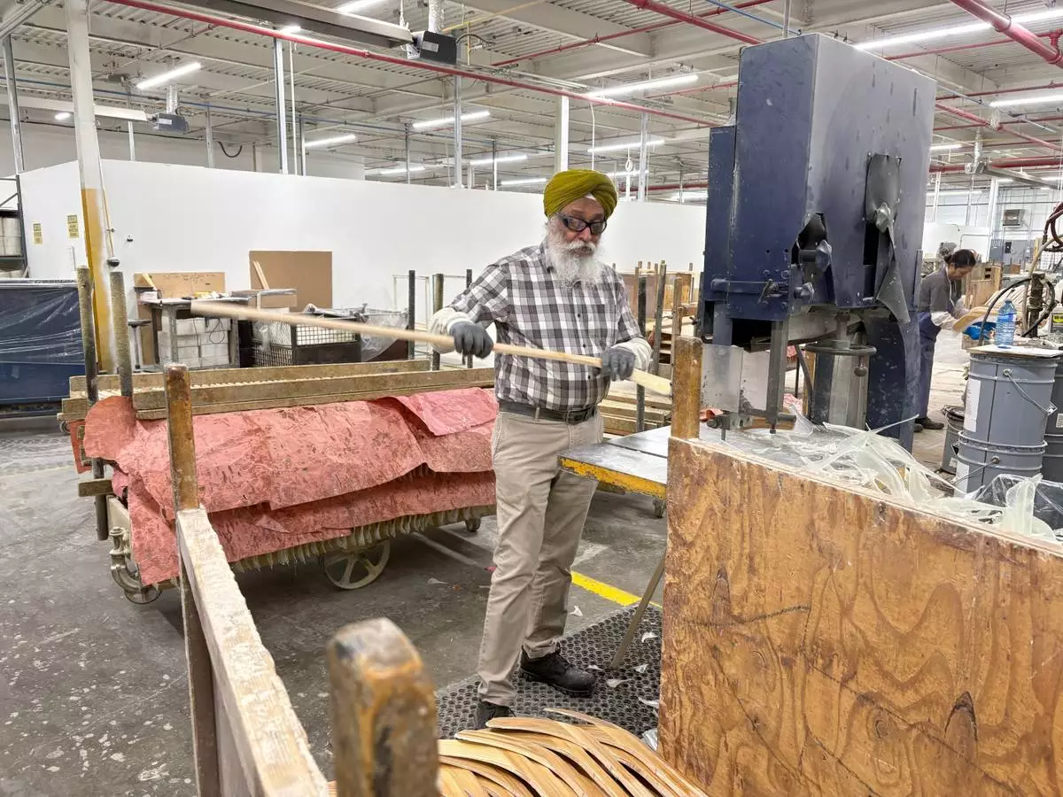 BRANTFORD, Ontario (AP) — Wearing protective gloves and earplugs, a worker feeds lengths of wood into a machine that makes an earsplitting whine as it automatically cuts a groove into the end of each piece.