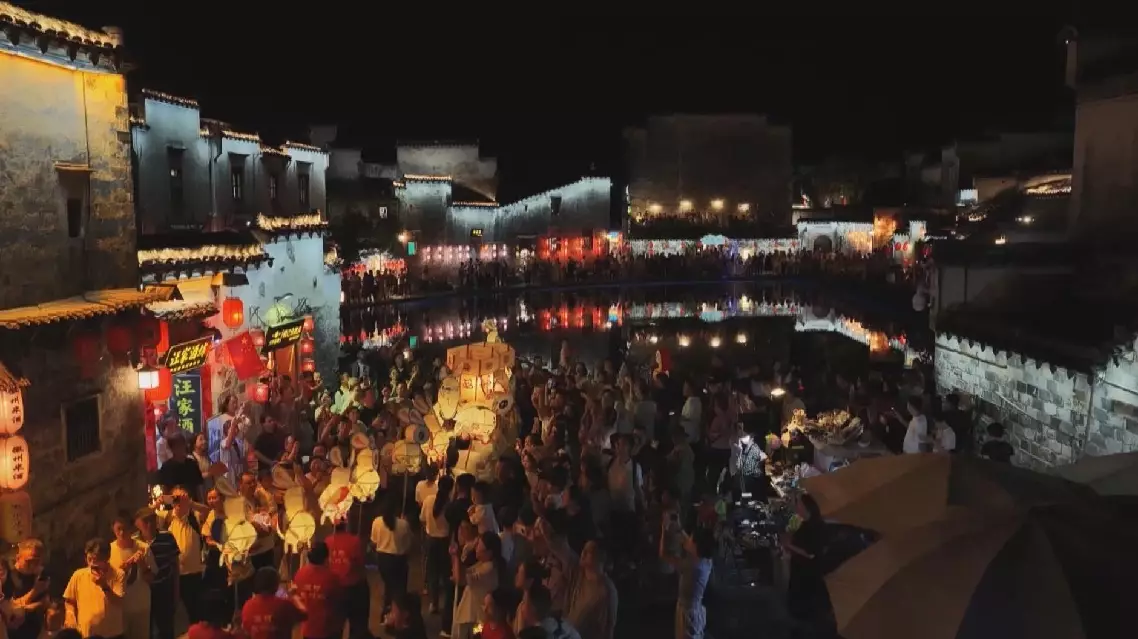 Ancient village in Anhui lights up for Mid-Autumn Festival with lantern parade