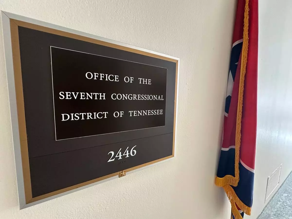 The state flag of Tennessee stands outside the office of Tennessee's 7th Congressional District in Washington, Sept. 2, 2025, which has a seat that became vacant following the resignation of Rep. Mark Green, R-Tenn. on July 20. (AP Photo/Robert Yoon)
