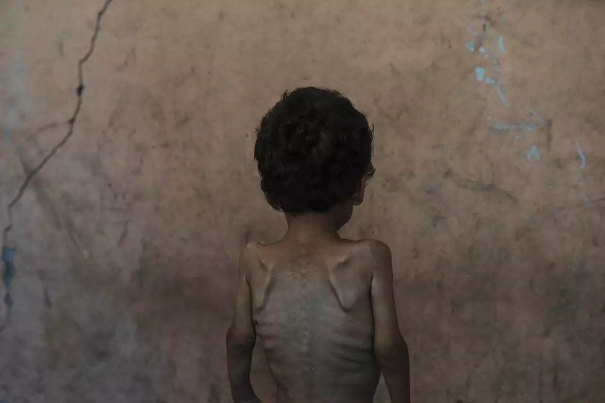 FILE.- Yazan Abu Ful, a 2-year-old malnourished child, poses for a photo at his family home in the Shati refugee camp, in Gaza City on Wednesday, July 23, 2025. (AP Photo/Jehad Alshrafi,File)