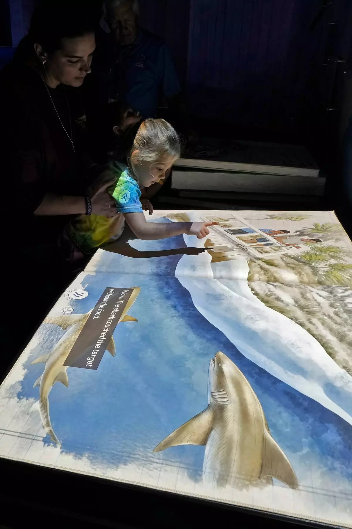 Visitors play with an interactive demonstration at the Mote Science Education Aquarium, Monday, Oct. 6, 2025, in Sarasota, Fla. (AP Photo/Chris O'Meara)