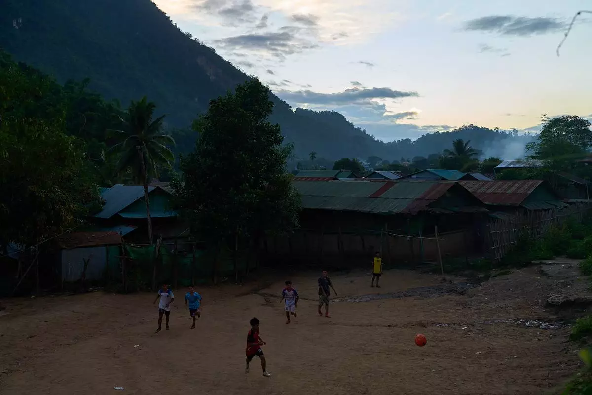 Eleven-year-old Soe fights the river’s current on his own hunt for fish, his skinny frame swallowed by his pink T-shirt. Nearby, children haul logs as big as their bodies back to their shelters for their families to sell.