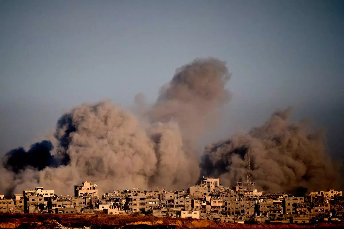 Smoke rises following an Israeli military strike in the northern Gaza Strip, seen from southern Israel, Wednesday, Oct. 8, 2025. (AP Photo/Emilio Morenatti)