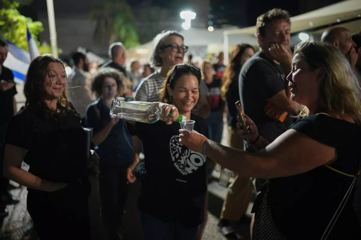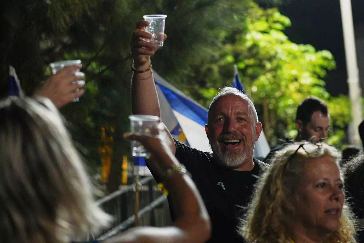 Joyful hostage families and their supporters began spilling into the central Tel Aviv square that has become the main gathering point in the struggle to free the captives. Some popped open a bottle of Champagne and cheered. Crying tears of joy, families hugged released hostages as the square continued to fill with Israelis.