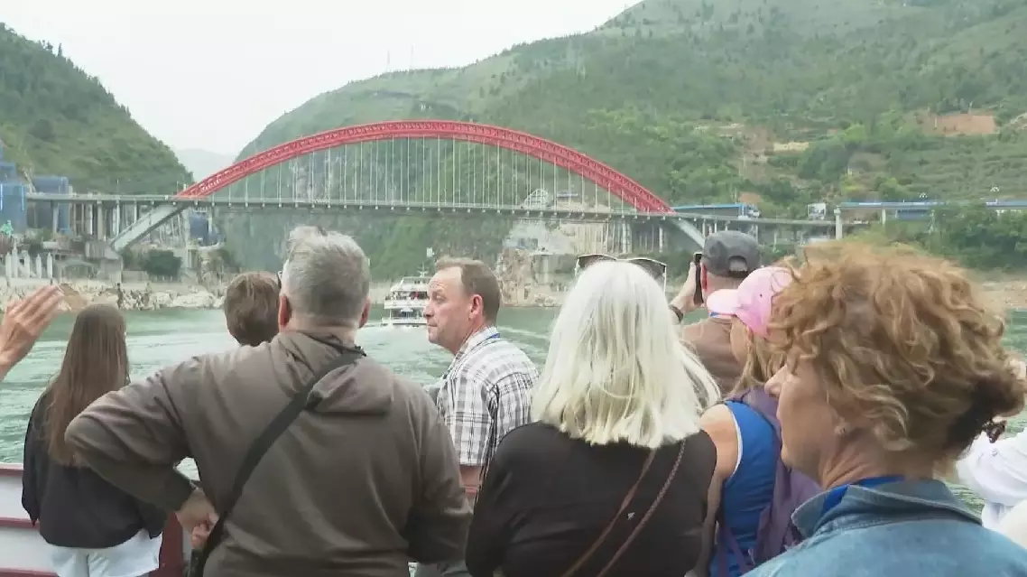 On a cruise at the Shennv Stream scenic area in southwest China's Chongqing Municipality, a group of tourists marveled at the modern engineering along the route. This scenic area has been developed alongside the construction of the Three Gorges Project, the world's largest hydropower project.