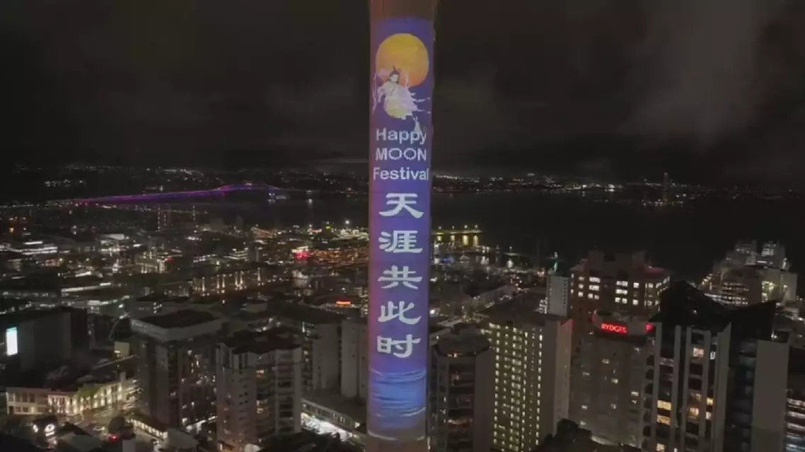 Iconic Mid-Autumn elements, such as the Chinese mythology figure of the Moon Goddess Chang'e and her pet Jade Rabbit, and mooncakes, were projected onto the city's landmark Sky Tower, allowing local residents to experience the unique charm of Chinese culture.