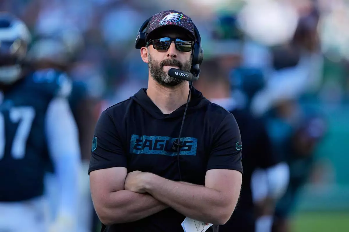 Philadelphia Eagles head coach Nick Sirianni watches action during the second half of an NFL football game against the Denver Broncos on Sunday, Oct. 5, 2025, in Philadelphia. (AP Photo/Chris Szagola)