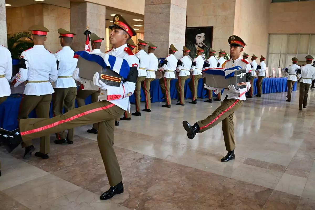 HAVANA (AP) — Cuban soldiers wearing white gloves marched out of a plane on Thursday carrying urns with the remains of the 32 Cuban officers killed during a stunning U.S. attack on Venezuela as trumpets and drums played solemnly at Havana's airport.