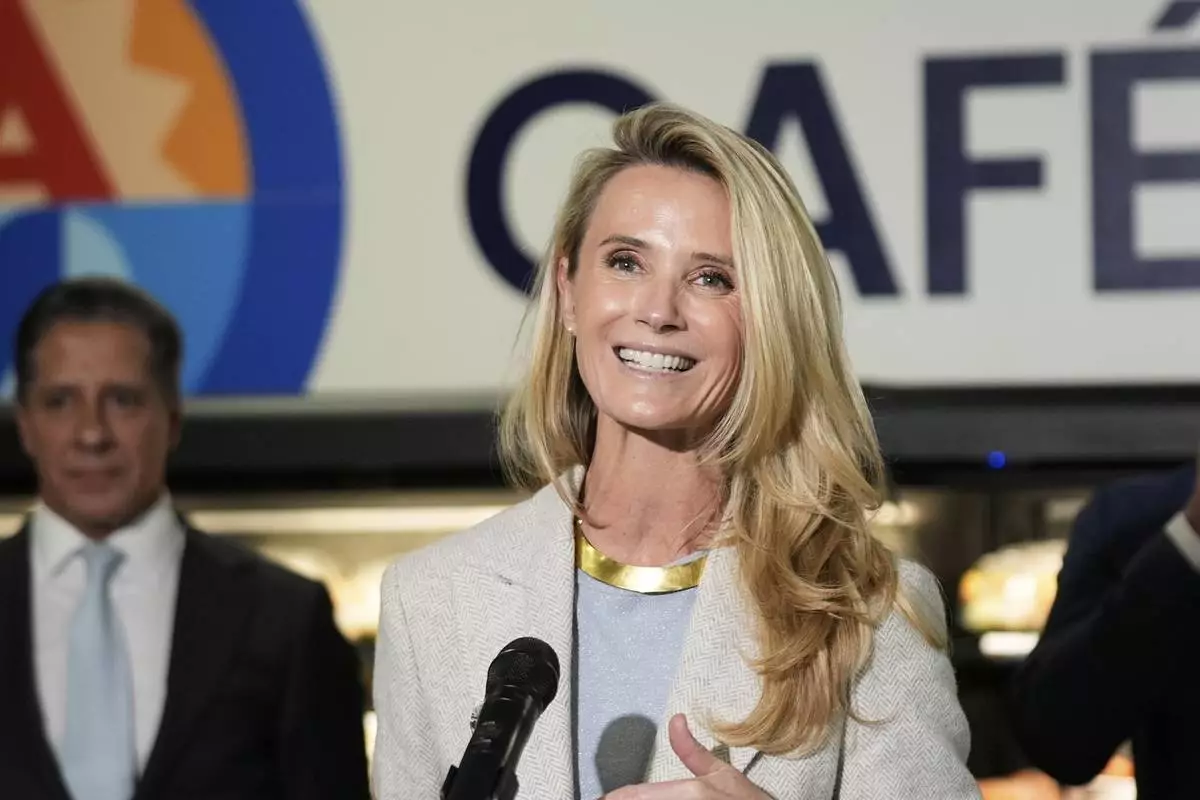 First partner Jennifer Siebel-Newsom, wife of Gov. Gavin Newsom, speaks at a news conference at Belvedere Middle School, Wednesday, Oct. 8, 2025, in Los Angeles. (AP Photo/Damian Dovarganes)