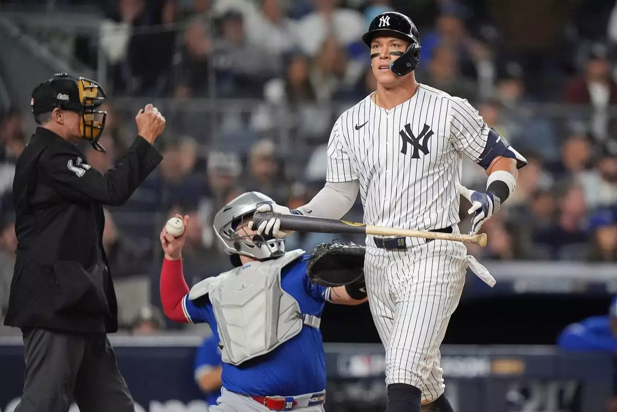 NEW YORK (AP) — Aaron Judge walked slowly from first base to the Yankees' dugout after Cody Bellinger ended the game with a strikeout, then turned his head to watch the Toronto Blue Jays celebrate on New York's infield.