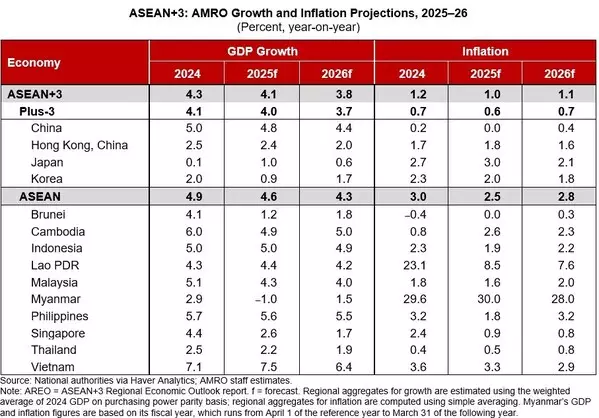 Growth in the ASEAN+3 region is projected at 4.1 percent in 2025 and 3.8 percent in 2026, an upward revision from July's forecast, supported by robust first-half performance and stronger-than-expected export momentum. Market pressures have gradually eased since peaking in April following the announcement of the "Liberation Day" tariffs.