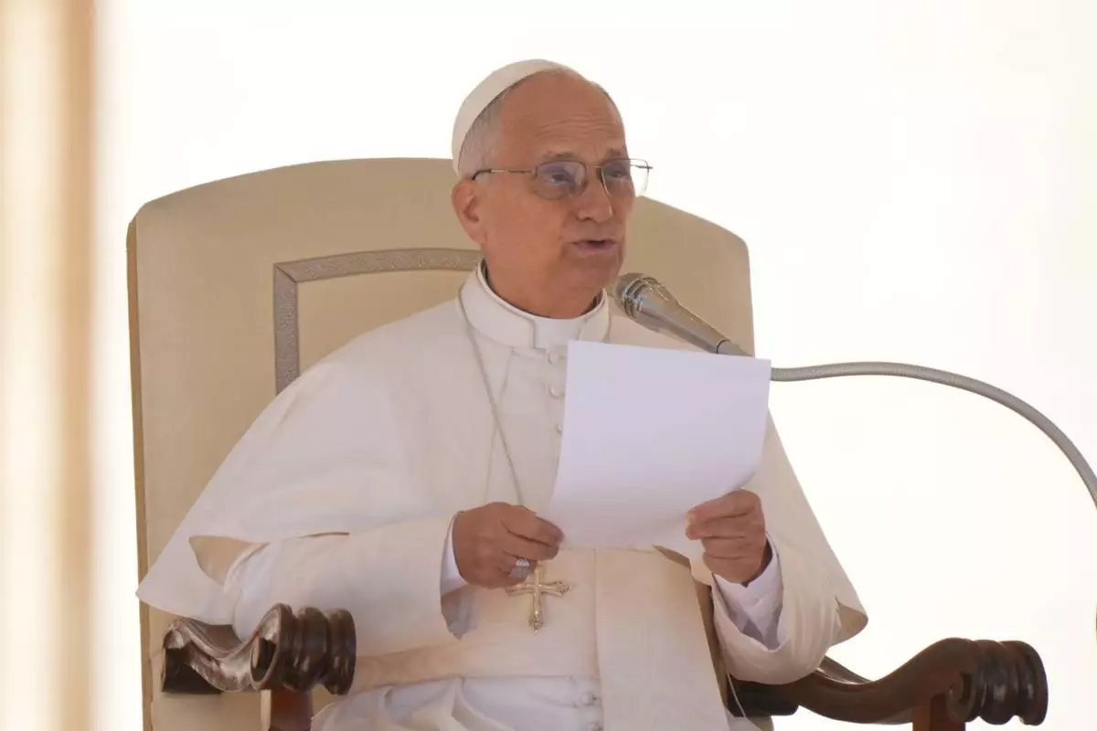 Pope Leo XIV holds his weekly general audience in St. Peter's Square, at the Vatican, Wednesday, Oct. 8, 2025. (AP Photo/Andrew Medichini)