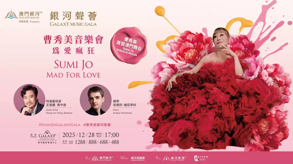 MACAU SAR - Media OutReach Newswire – 9 October 2025 - Galaxy Macau™ Integrated Resort is delighted to present an evening of operatic splendour with "Galaxy Macau™ Presents - Galaxy Music Gala: Sumi Jo - Mad for Love" as internationally acclaimed South Korean soprano Sumi Jo makes her long-awaited Macau debut at 17:00 on December 28 at Auditorium of the Galaxy International Convention Center (GICC). Tickets will be available from 12:00, October 14 through Galaxy Ticketing and Macau Ticket.