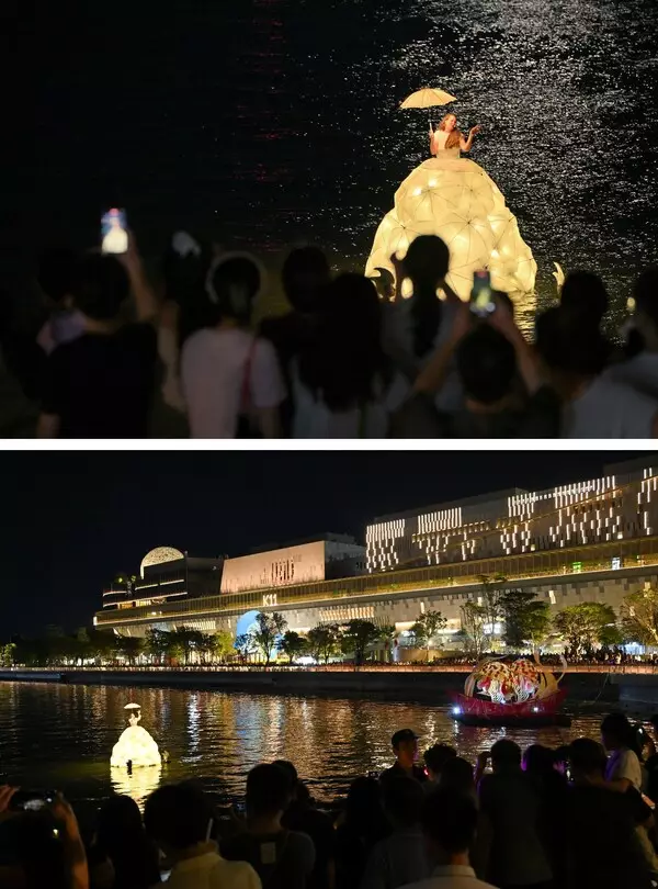 The Dutch soprano, adorned in a spectacular umbrella-shaped gown inspired by 17th-century European fashion, floated on the water and perform classic arias from Madam Butterfly and The Moon Represents My Heart, among other well-known pieces. This unique visual presentation, set against the backdrop of Mid-Autumn celebrations, created a poetic "sea spectacle" that resonates emotionally with the audience, which received enthusiastic acclaim and positive feedback from audiences from various places.