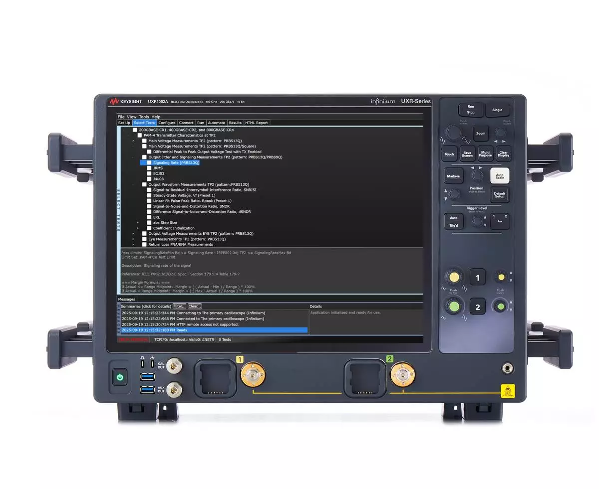 At the Summit, Keysight will also unveil an electrical 212 G receiver conformance test application ( M8091DJCA ). The 212 G receiver conformance application supports cable and backplane interfaces, which are foundational technologies of the UALink 200 Gb/s 1.0 standard and a key enabler for AI scale-up networking. The solution combines a Keysight M8050A 120 Gbd High-Performance BERT, a Keysight Infiniium UXR Real-Time Oscilloscope, and the M8091DJCA compliance application to deliver automated testing, advanced measurement coverage, and streamlined calibration for conformance and debug.