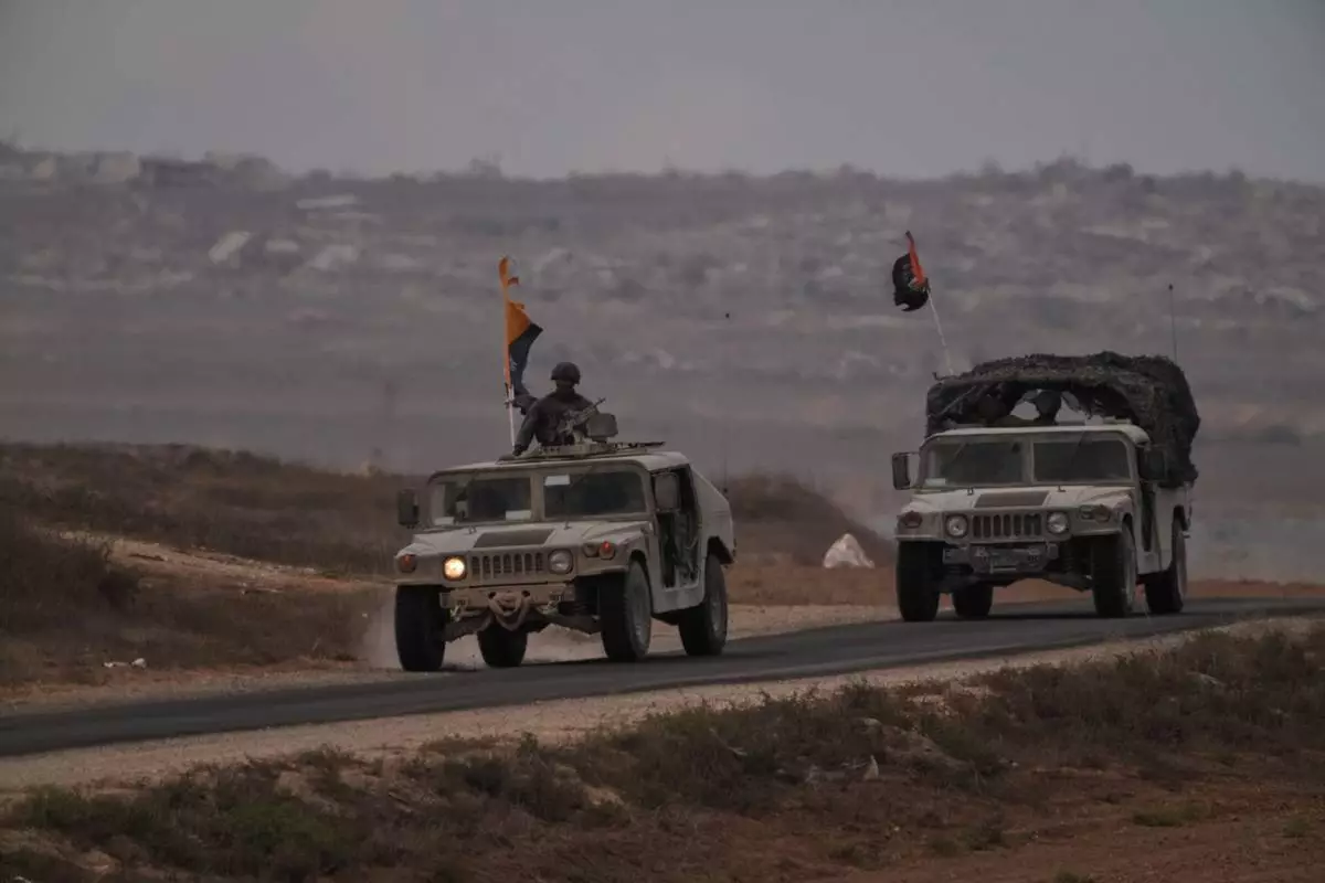 Israeli soldiers move near the Israeli-Gaza border, as seen from southern Israel, Thursday, Oct. 9, 2025, following the announcement that Israel and Hamas have agreed to the first phase of a peace plan to pause the fighting. (AP Photo/Ariel Schalit)