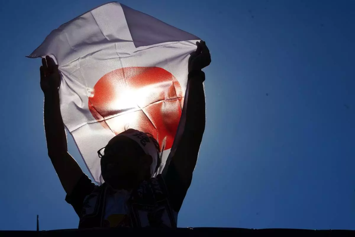 Japan fans cheer prior to a FIFA U-20 World Cup Group A soccer match against Chile at National Stadium in Santiago, Chile, Tuesday, Sept. 30, 2025. (AP Photo/Matias Delacroix)