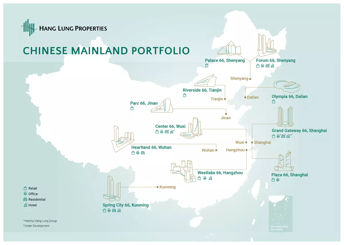 Hang Lung's Chinese Mainland portfolio under the signature "66" brand is located in nine major cities