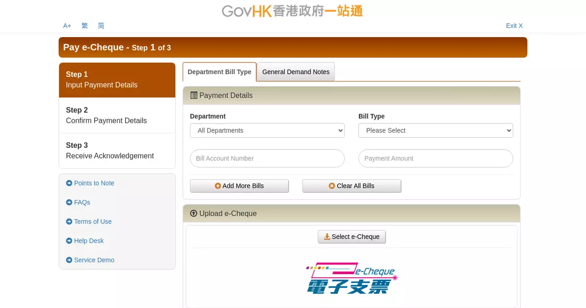(2) by uploading an e-Cheque/e-Cashier Order via the Pay e-Cheque portal (www.payecheque.gov.hk);
