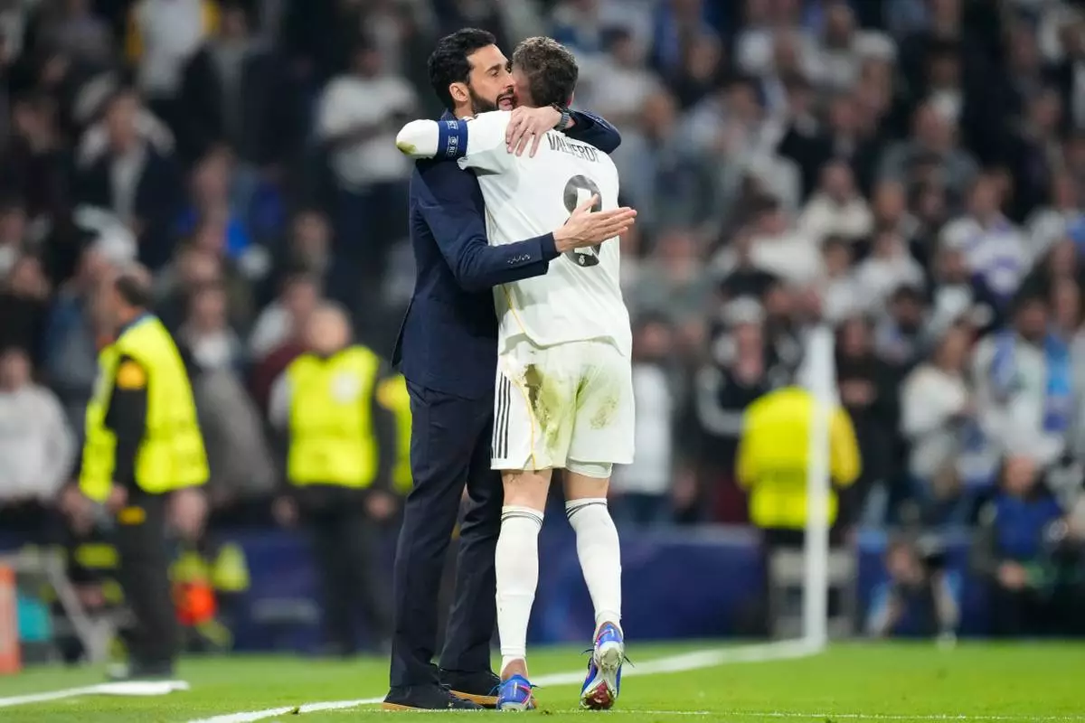 A couple embrace a day after a shooting at Sydney's Bondi Beach, Monday, Dec. 15, 2025. (AP Photo/Mark Baker)