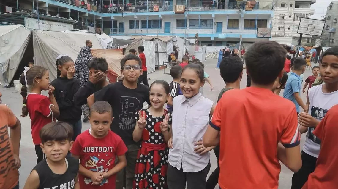 At a school-turned shelter run by the United Nations Relief and Works Agency for Palestine Refugees in the Near East (UNRWA) in central Gaza, displaced children were seen taking to the streets clapping hands as a peace plan paving way to ceasefire entered its first phase on Thursday.
