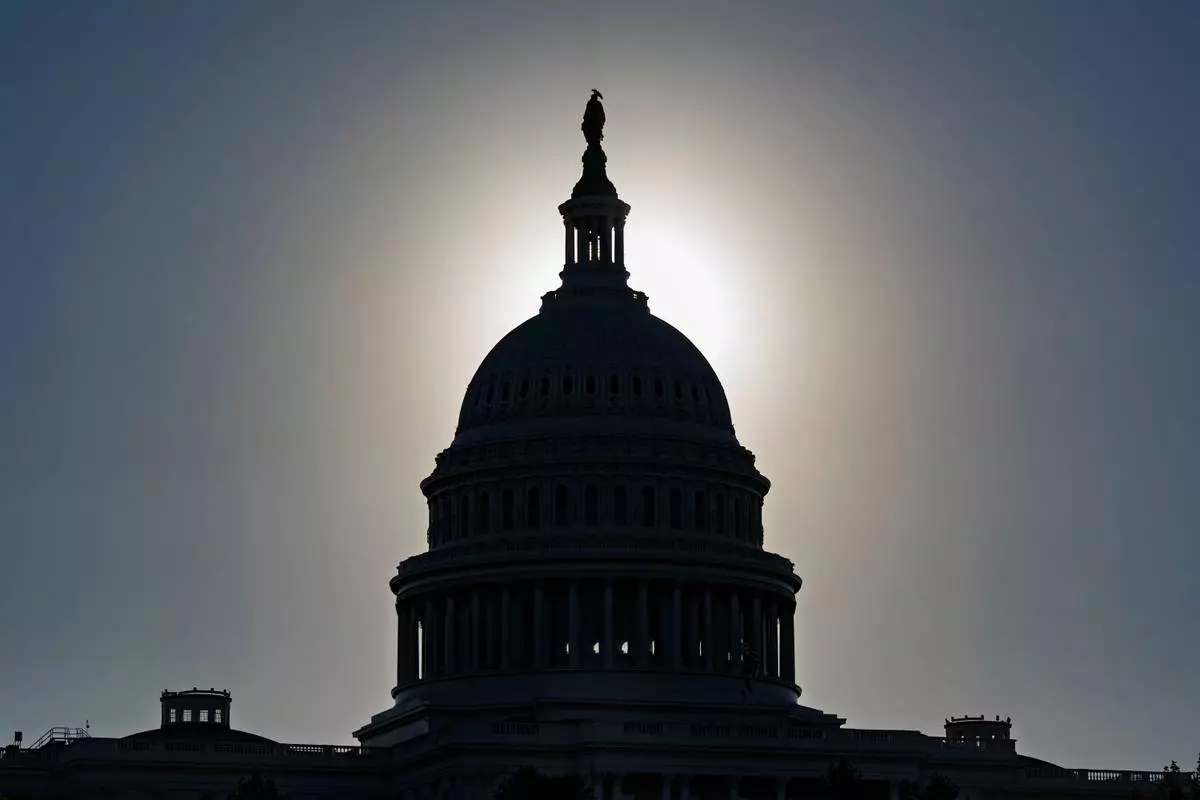 The U.S. Capitol is silhouetted by the stark glare of the morning sun as a government shutdown begins its tenth day, in Washington, Friday, Oct. 10, 2025. (AP Photo/J. Scott Applewhite)