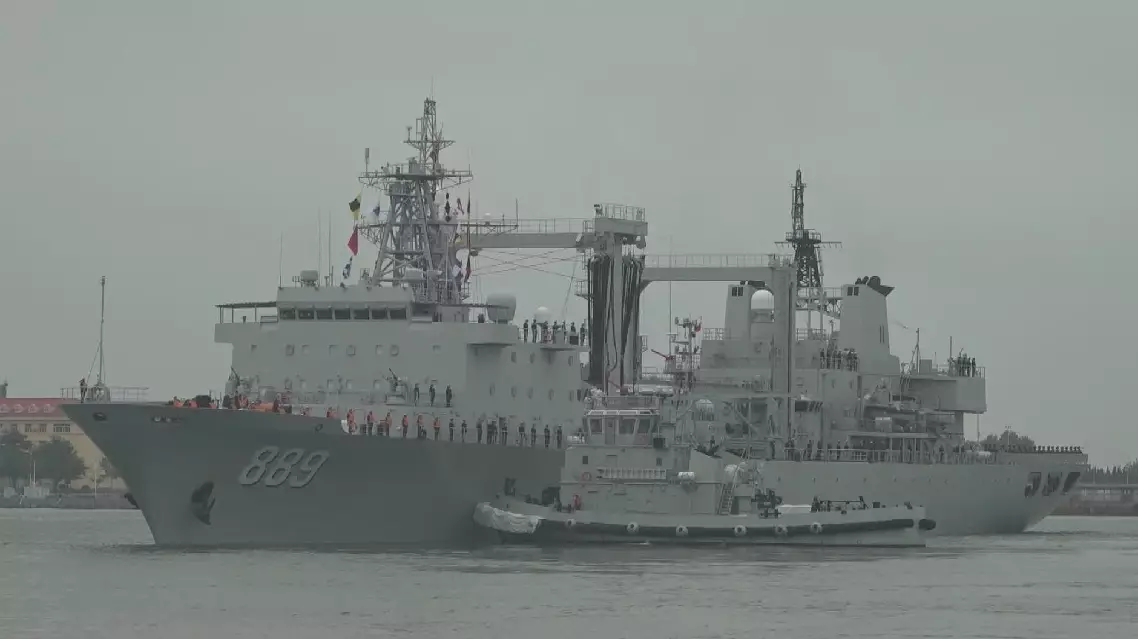 The fleet comprises the guided-missile destroyer Tangshan, the guided-missile frigate Daqing, and the comprehensive supply ship Taihu.