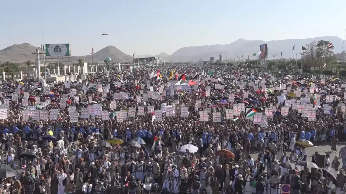 Yemen's Houthi group on Friday organized massive rallies to voice support for Palestinians after an Israel-Hamas peace deal took effect the same day, vowing to take actions if Israel and the United States fail to implement the ceasefire.