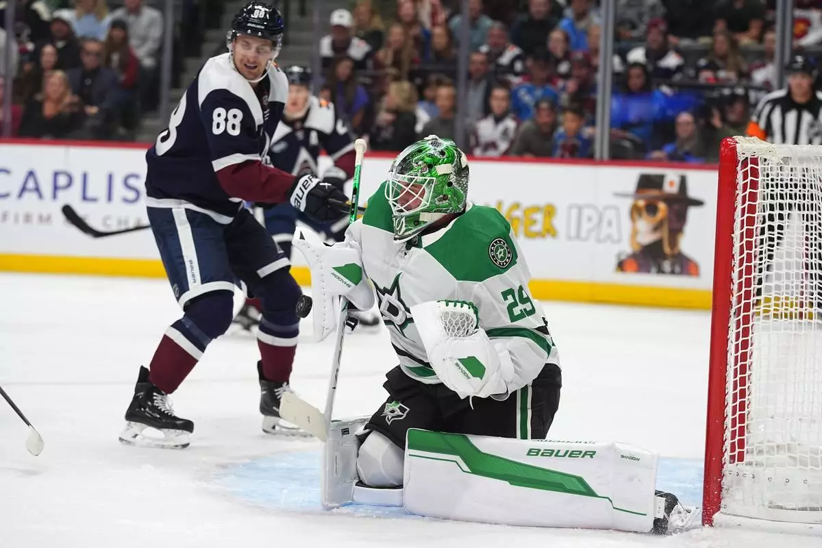 Oettinger had 35 saves through overtime and two more in the shootout for Dallas, which spoiled a milestone night for Brent Burns, who had an assist for his first point in a Colorado sweater.