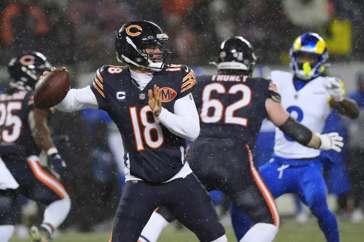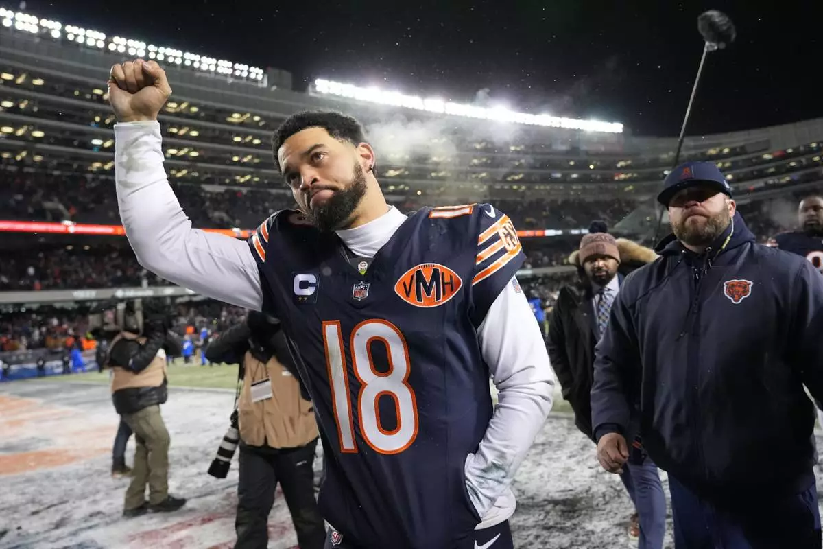 CHICAGO (AP) — Caleb Williams' last throw in regulation was a backpedaling, fourth-down rainbow that landed in Cole Kmet's hands in the corner of the end zone for a breathtaking touchdown.