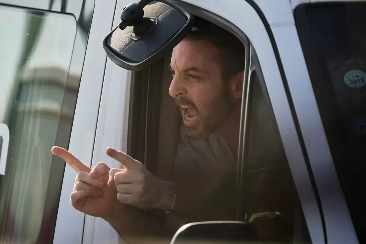 Freed Israeli hostage Eitan Mor gestures from a van as he arrives at Beilinson hospital in Petah Tikva, Israel, after he was released from Hamas captivity in the Gaza Stripl, Monday, Oct. 13, 2025. (AP Photo/Ariel Schalit)