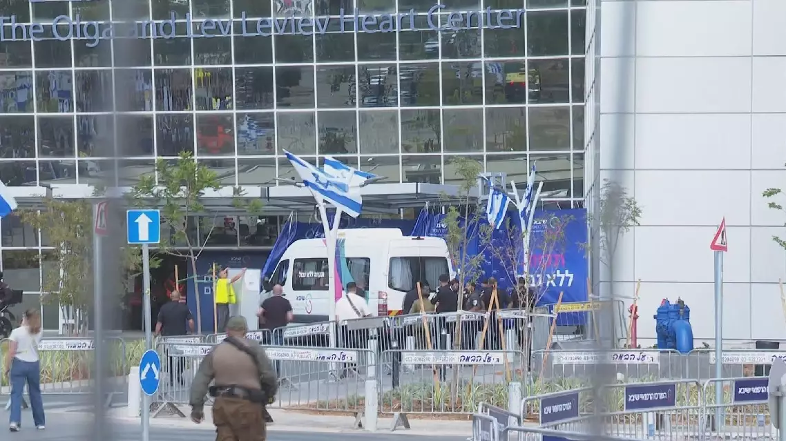 A helicopter carrying the released Israeli hostages landed outside the Sheba Medical Center, the largest medical institution in Israel.