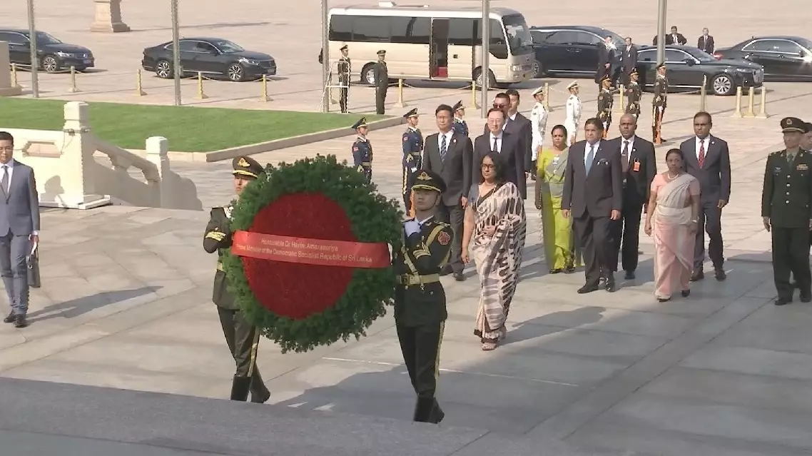 Sri Lankan Prime Minister Harini Amarasuriya laid a wreath at the Monument to the People's Heroes on the Tian'anmen Square in Beijing, capital of China on Tuesday.