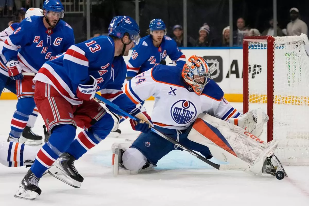 Artemi Panarin had an early chance all alone in front against Edmonton that was stopped by Stuart Skinner. Will Cuylle also got the puck on net after an Oilers turnover only to be turned aside, and fourth-liners Adam Edstrom and Matt Rempe had quality opportunities on the edge of the crease.