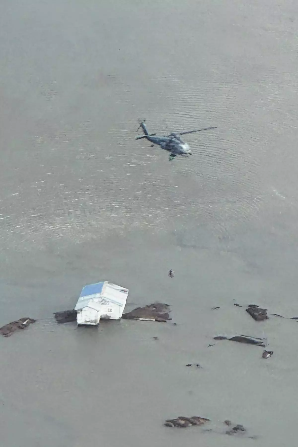 In this photo provided by the Defense Visual Information Distribution Service, Alaska Air National Guard rescue personnel conduct a search and rescue mission in Kipnuk, Alaska, on Monday, Oct. 13, 2025. (Defense Visual Information Distribution Service via AP)