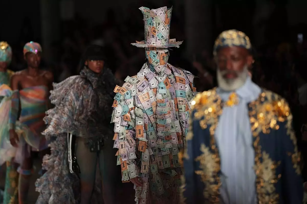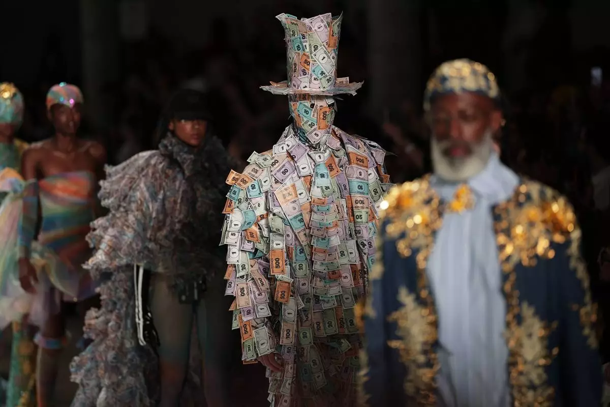Models wear creations from the Dario Mittmann collection during the Sao Paulo Fashion Week, Thursday, Oct. 16, 2025. (AP Photo/Ettore Chiereguini)