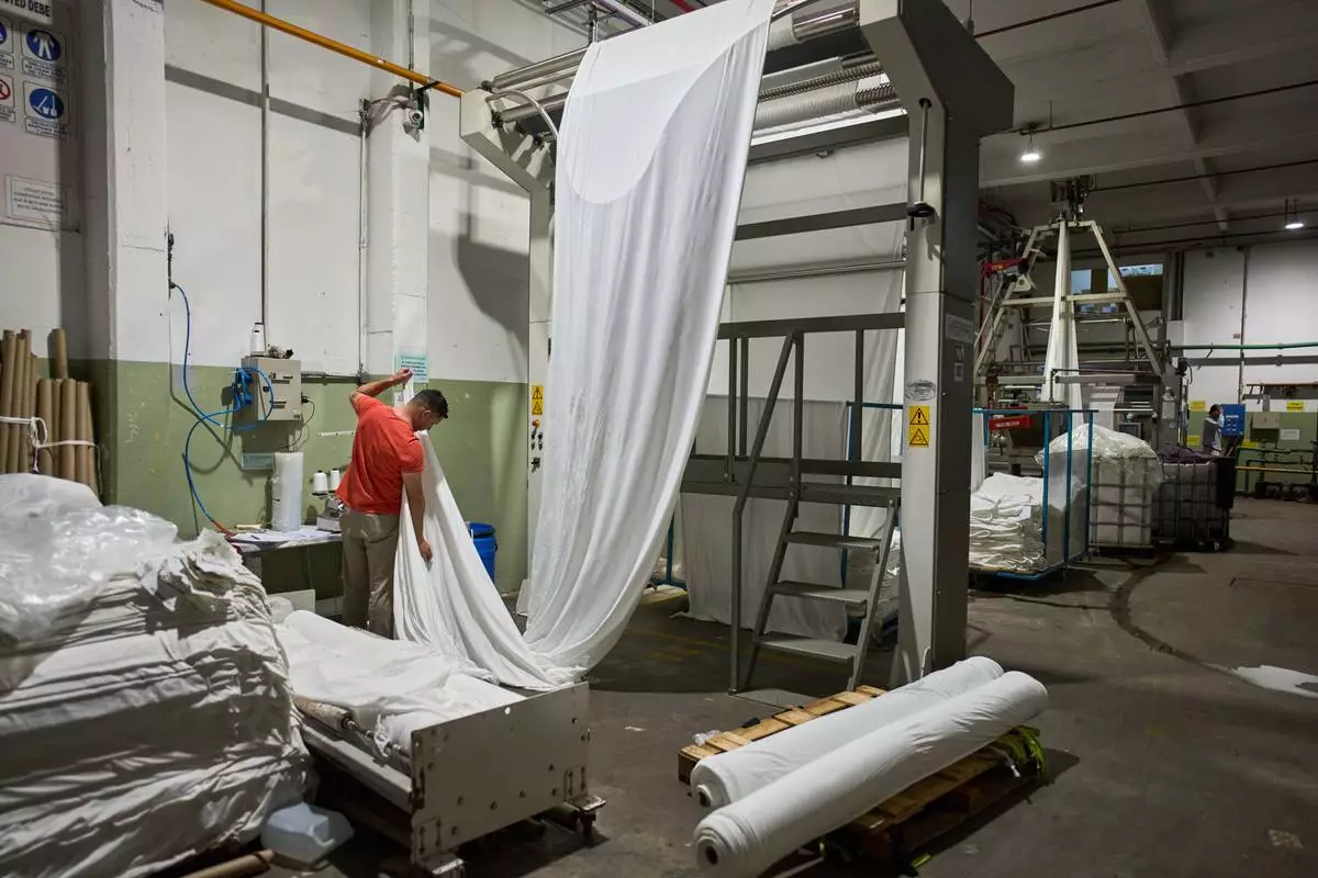 But on Monday afternoon, the factory was so quiet that Galfione's footsteps rang clear through the compound. A handful of workers at the Galfione Group factory in Argentina’s capital spooled yarn and dyed cloth.