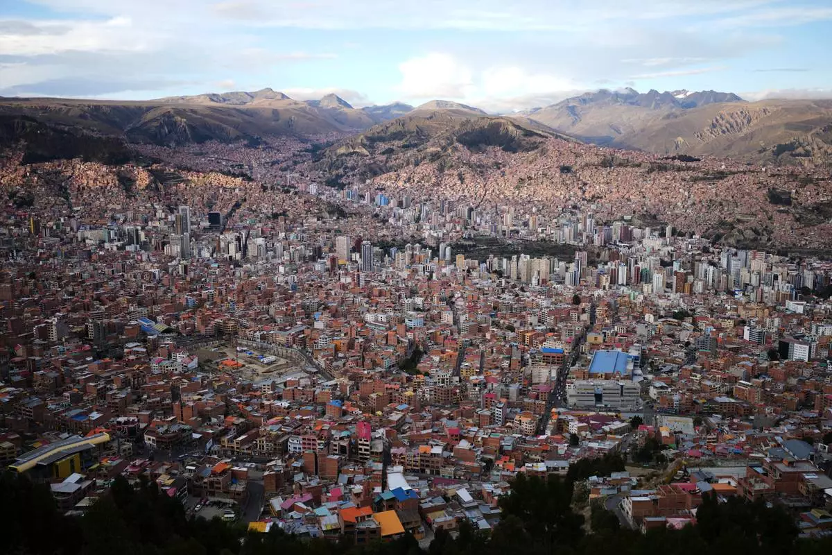 A view of La Paz, Bolivia, Thursday, Oct. 16, 2025, ahead of the upcoming presidential runoff election. (AP Photo/Natacha Pisarenko)