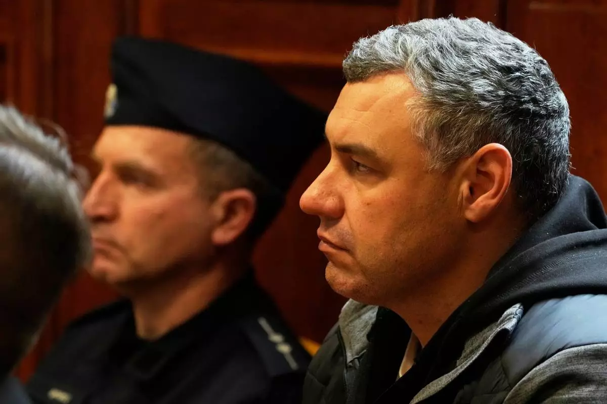 Ukrainian defendant Volodymyr Zuravlov listens as a judge announces the decision not to allow for extradition to Germany in courtroom of Warsaw's Regional Court in Warsaw, Poland, Friday, Oct. 17, 2025. (AP Photo/Czarek Sokolowski)